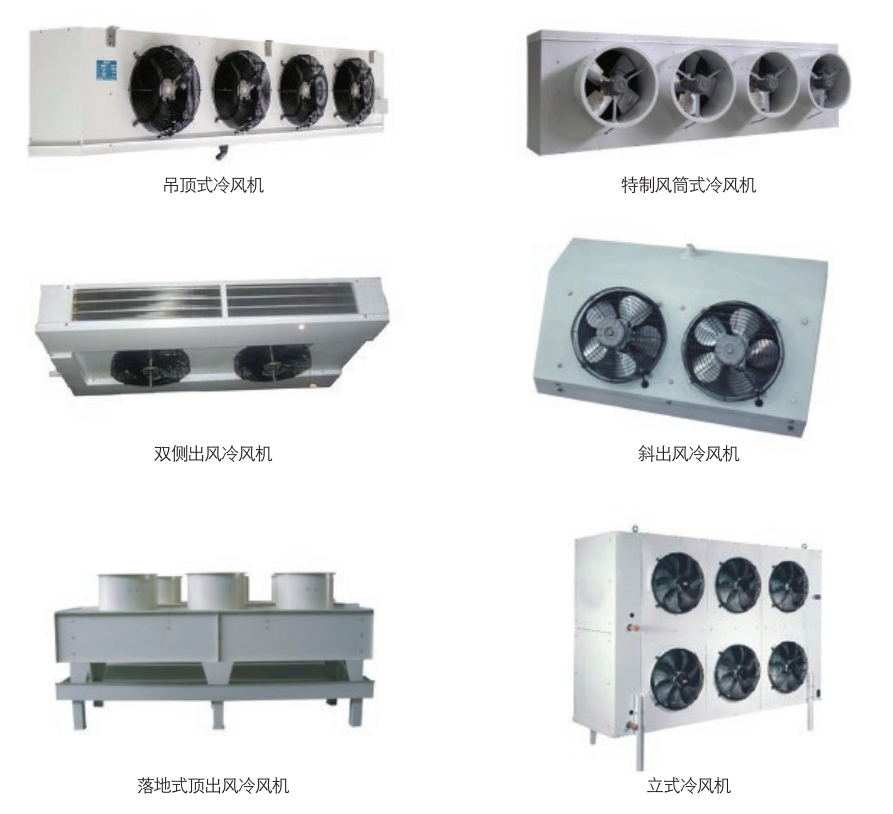 風冷(lěng)蒸發器(qì)(又(yòu)稱冷(lěng)風機)是一種适用(yòng)于各種冷(lěng)庫的(de)冷(lěng)卻降溫設備,吊頂式(D型)爲常用(yòng)型D 型冷(lěng)風機又(yòu)分(fēn)爲 DL、DD和(hé) DJ三個(gè)系列,DL系列(片距 4.5mm)适用(yòng)于高(gāo)溫冷(lěng)藏庫及冷(lěng)風車(chē)間;DD 系列(片距 6mm)适用(yòng)于中低溫冷(lěng)藏庫;DJ系列(片距9mm)适用(yòng)于低溫速凍庫。