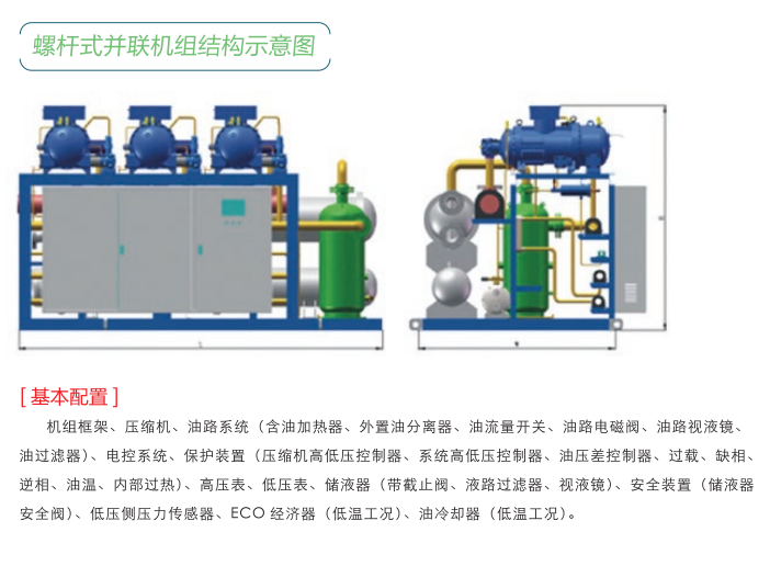 逆相(xiàng)、油溫、内部過熱(rè))、高(gāo)壓表、低壓表、儲液器(qì)(帶截止閥、液路(lù)過濾器(qì)、視液鏡)、安全裝置(儲液器(qì)